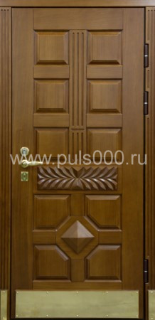 Стальная дверь из массива дерева с резьбой и порошковым окрасом MS-20